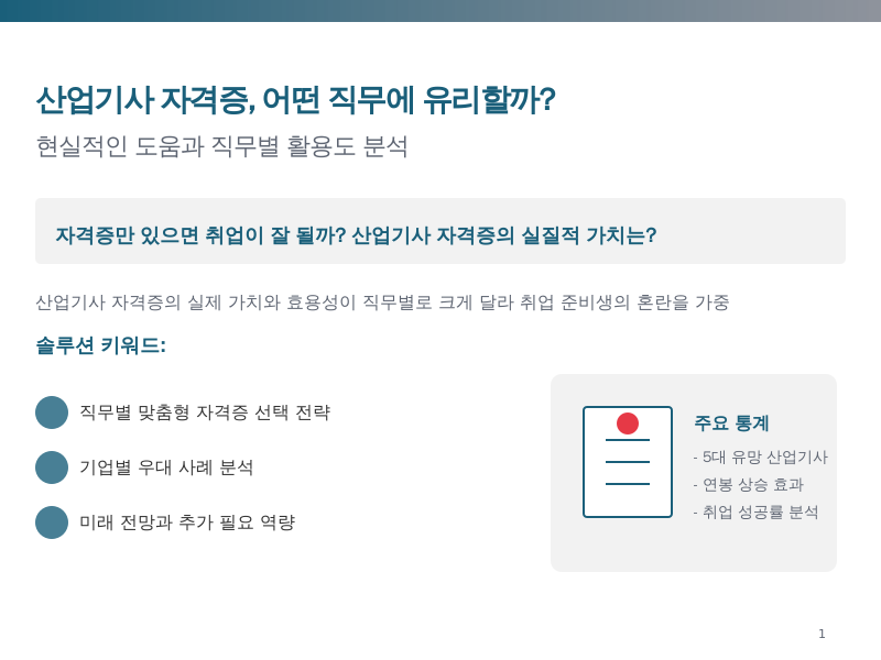 직무별 산업기사 자격증의 실질적 혜택 💼
