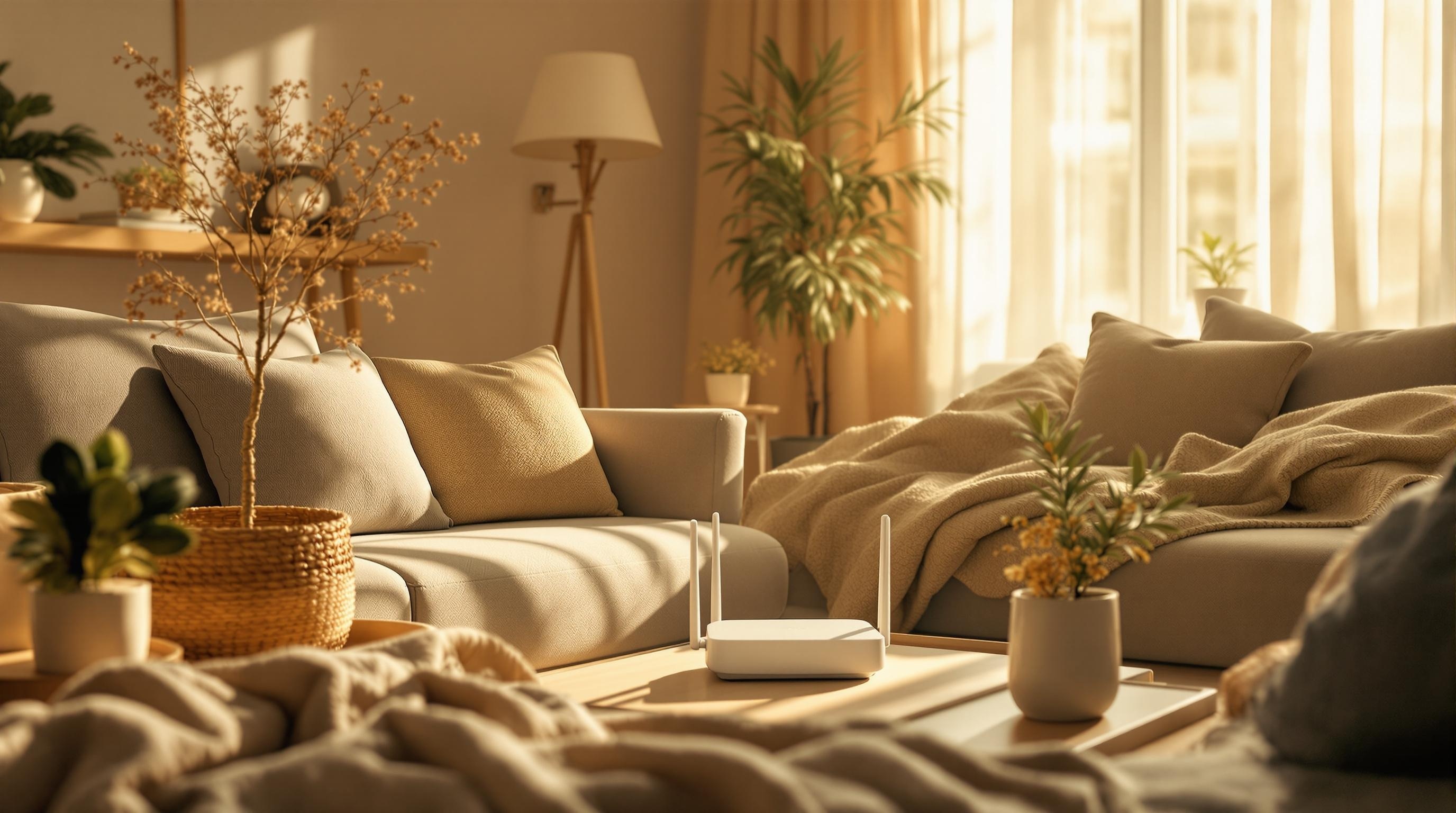 올바른 공유기 위치: 공유기는 집 중앙에 두고, 벽이나 장애물이 없는 곳이 좋아요.
