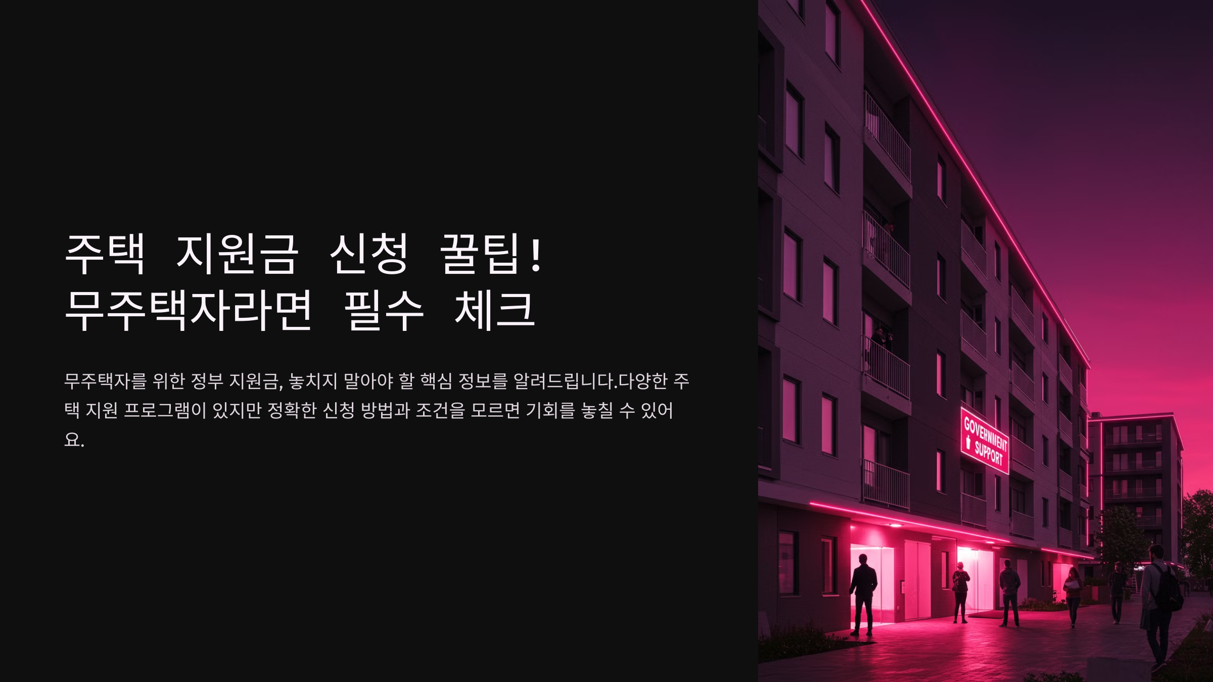 안녕하세요, 여러분! 혹시 주택 지원금을 신청하려고 고민하고 계신가요? 🏡 하지만 신청 절차나 지원 대상이 헷갈려서 망설이고 계신다면, 이 글이 큰 도움이 될 거예요! 요즘 정부에서 다양한 주택 지원 프로그램을 운영하고 있지만, 정확한 신청 방법을 모르거나 조건을 제대로 확인하지 않아 놓치는 경우가 많습니다. 😢 그래서 오늘은 무주택자분들이 꼭 알아야 할 주택 지원금 신청 팁과 필수 체크 사항을 하나씩 살펴보겠습니다!